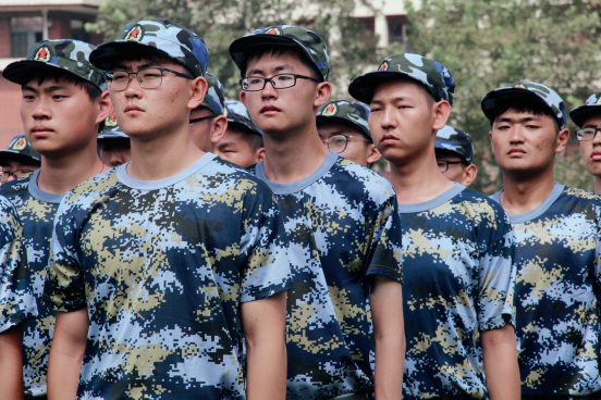 然而接下来的几天,开始阵雨不断。可是雨水并没有阻挡同学们的训练。下着淅沥沥的小雨时,同学们冒雨继续训练,雨势变大,训练场地便由操场转为宿舍楼道。在昏暗的灯光里,同学们背贴墙壁站军姿,一动不动。期间,有的同学身体不适,仍咬牙坚持训练,有的同学病倒了,稍微好转就迅速归队继续训练。阴雨连绵的日子持续几天,高温和烈日便席卷而来。尽管顶着毒辣的太阳,同学们对训练却丝毫不懈怠。
