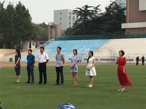 9月13日上午,公司党总支董典同书记、党总支周红燕副书记、副经理周恩泽 、副经理宋志文、团总支书记张恬、教学秘书冯兰老师以及2016级新生辅导员郑春英老师等一同前往公司操场慰问16级新生,向新生传达不怕苦不怕累的优秀精神,同时要求员工把这份精神坚持下去。