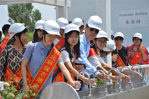 参观人员在讲解员的带领下,先后参观了海泊河污水处理厂的沉淀池、微生物降解池及青岛白发海水淡化公司先进的机械设备并品尝了经过淡化后的海水。