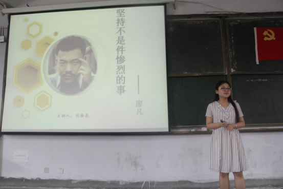 首先,刘翰柔同学以《坚持不是一件惨烈的事》向我们介绍了有“黄金配角”之称的著名男演员廖凡。廖凡因演绎功底深厚,出演过众多广为人知的作品,但因一直担任配角,事业上并没有像同期演员那样一炮而红。在大家纷纷为他感到惋惜时,他却说:“在我看来,我每一次演出都没把自己当成一个小配角,我每次演出我都是觉得我自己是一个男一号。”终于,通过他的不懈努力,在第64届柏林国际电影节上廖凡斩获最佳男演员奖,这是首位获得该奖项的华人男演员。廖凡用实际行动告诉我们——坚持不是一件惨烈的事,坚持必有回报!接下来,张锋哲同学向我们分享了《戴尔·卡耐基的一生》一书。卡耐基18岁获得勒伯第青年演说家奖,但获奖的背后却是12次屡战屡败。张锋哲结合自身经历说道:自己从大一参加员工会答辩吞吞吐吐,到今天能勇敢的站在近200人面前自信地进行读书分享,正是因为受到了卡耐基的激励,为增强自信不断得寻找当众演说的机会才使自己有了今天的进步。张锋哲同学的分享深深地感染了在座的同学,台下响起了热烈的掌声。最后,由范梦雨同学为大家带来《追风筝的人》一书的分享。该书不仅是一部政治史诗,也是一个关于童年如何影响成年生活的极度贴近人性的故事。这部书的内容将这个过去不引人注意、在新千年却成为全球政治焦点的国家的文化呈现在世人面前,极为难能可贵。之后,其他党员同志也做了其他书籍的读后分享。