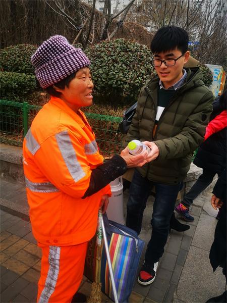 本次活动,志愿者们分为四队,将带来的热水与纯净水提供给工作中的环卫工人们。爱心行动让市北区的环卫工人们体会到了社会对自己工作的尊重和认可,感到了浓浓的暖意和关怀。