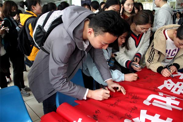公司年轻教师带头在横幅上签名,员工们纷纷响应,积极参与。在横幅上签下自己的名字,表示对于光盘行动的支持,作出了自己的承诺。