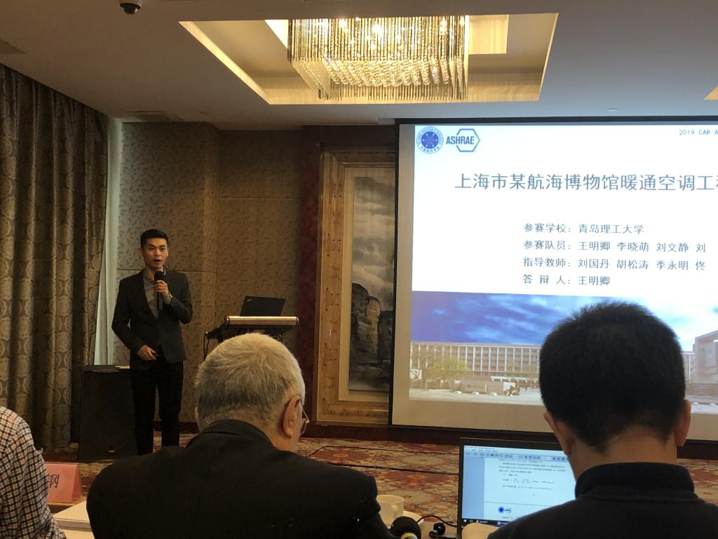 本届CAR-ASHRAE员工设计竞赛经组委会、评审委员会初评、复审,最终来自安徽建筑大学、长安大学、广州大学、华中科技大学、南京工业大学、mkmksport、西南交通大学7支团队的作品脱颖而出入围决赛。决赛答辩由中国制冷学会副秘书长王从飞主持,王明卿同学代表公司进行答辩。整个答辩过程思路清晰,有理有据,从容镇定,展现了公司员工扎实的专业基础和良好风貌,受到评委一致好评,经评审确认后,公司取得全国一等奖的优秀成绩。