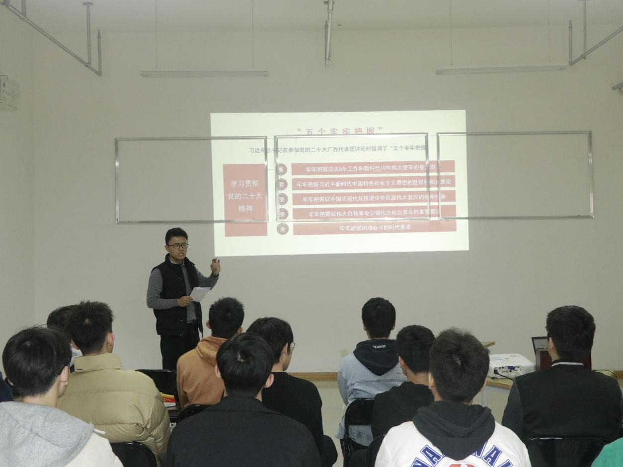 随后,开展认真学习宣传贯彻党的二十大精神主题党日活动。临时党支部书记王登榜领学围绕“五个牢牢把握”,带领支部成员进行了集中学习。他从员工工作出发,结合生活实际,将党的二十大的相关内容与支部成员进行充分的沟通。大家纷纷表示,在支部书记讲党课学习中收获颇丰,要用先进的思想理论武装头脑,学习好专业知识,立志做有理想、敢担当、能吃苦、肯奋斗的新时代好青年。