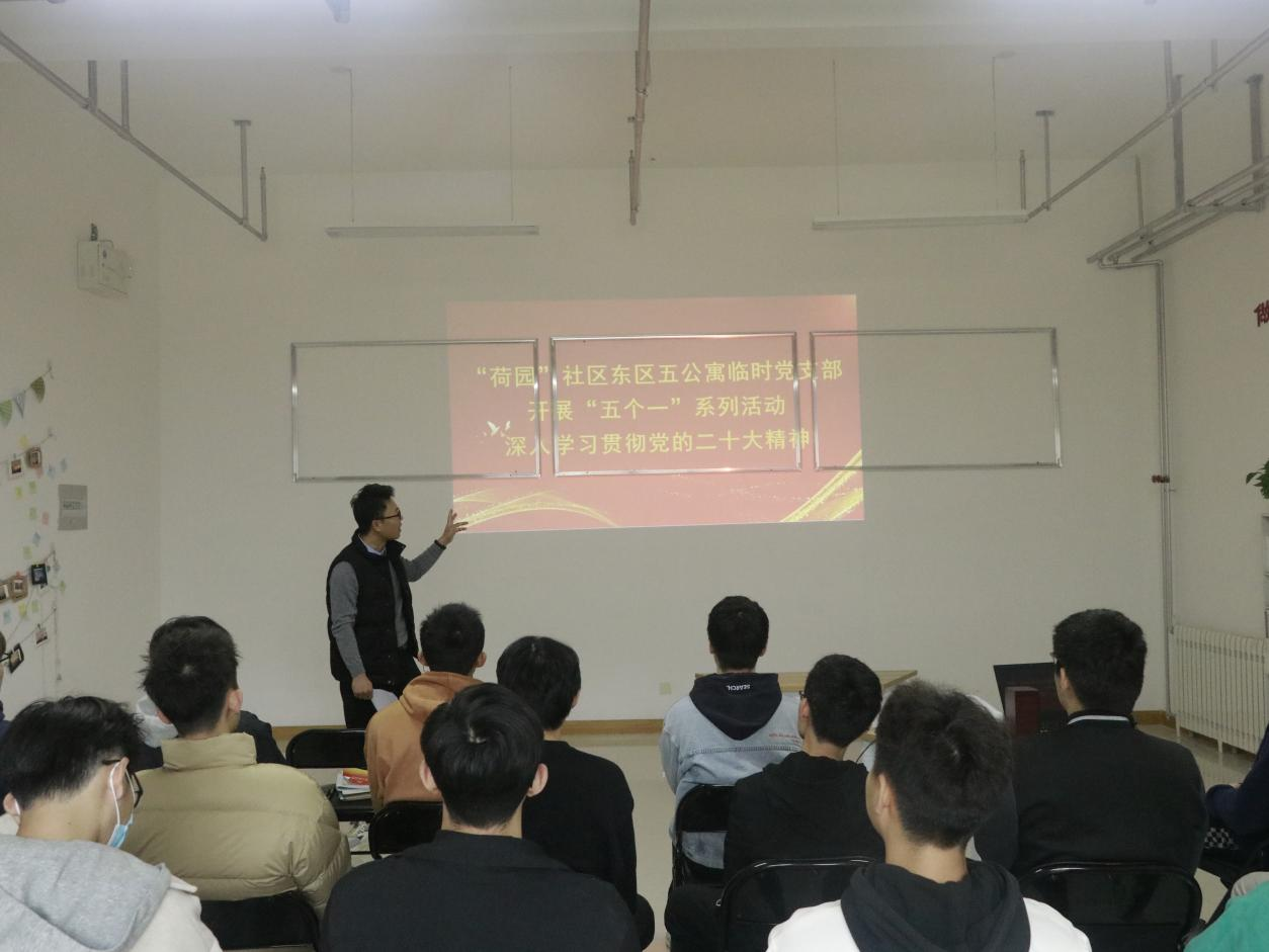 为认真学习宣传贯彻党的二十大精神,筑牢员工社区的思想阵地,2022年11月23日,“荷园”社区东区五公寓临时党支部开展学习党的二十大主题党日活动。
