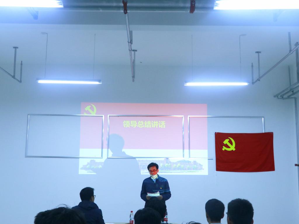何云峰做总结发言。他指出,党的二十大报告所描绘的伟大变革和宏伟蓝图让大家备受鼓舞。各位员工党员要做到先学一步、学深一步,学深悟透党的二十大精神,不断提升自己理论水平,坚定马克思主义立场,实现理论与实践的结合,真抓实干,更好的发挥社区临时党支部的战斗堡垒作用和党员的先锋模范作用。他强调,临时党支部要在社区中争先锋、做表率,充分发挥员工基层党支部政治引领和服务同学的作用;要团结带领同学们弘扬正气,筑牢学风建设,打造品牌建设;加强学思践悟,以理想者、担当者、吃苦者、奋斗者的姿态,奋进新征程,诠释新青春,创造新业绩。