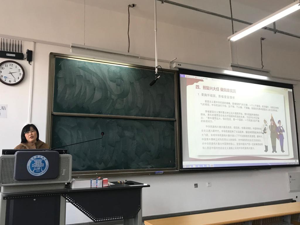 马莉从绷紧思想弦,织密防控网;筑安全防线,建平安校园;奋斗新时代,一起向未来以及担复兴大任,做先锋党员四个方面为同学们讲了一堂生动的党课。