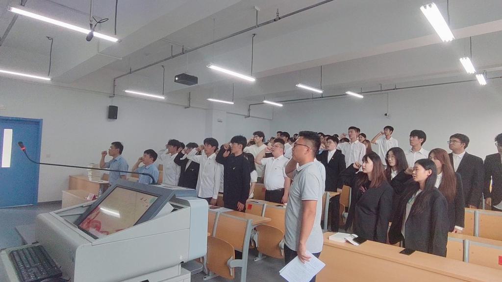 宣读誓词,牢记使命。入党宣誓是一名党员政治生命开始的象征,体现了一个共产党人为实现人生最高价值所做出的无悔选择。“我志愿加入中国共产党,拥护党的纲领,遵守党的章程……”员工党建工作室指导教师、正式党员王登榜带领43名预备党员面向鲜红的党旗,庄严地举起右手,向党旗宣誓。随后,预备党员、给排水221班门楷程同志代表入党宣誓的新党员,向党组织表明以下决心。他说道:“在今后的工作和生活中,我将严格要求自己,把今天的入党宣誓,内化于心、外化于行,为全面建设社会主义现代化国家,推进中华民族伟大复兴做出自己的应有贡献!”最后,华文健代表上级党组织讲话。他讲到:党员青年要以实际行动践行自己的誓言,充分发挥共产党员的先锋模范带头作用,为壮丽的共产主义伟大事业和实现中华民族伟大复兴的中国梦作出新的更大贡献!