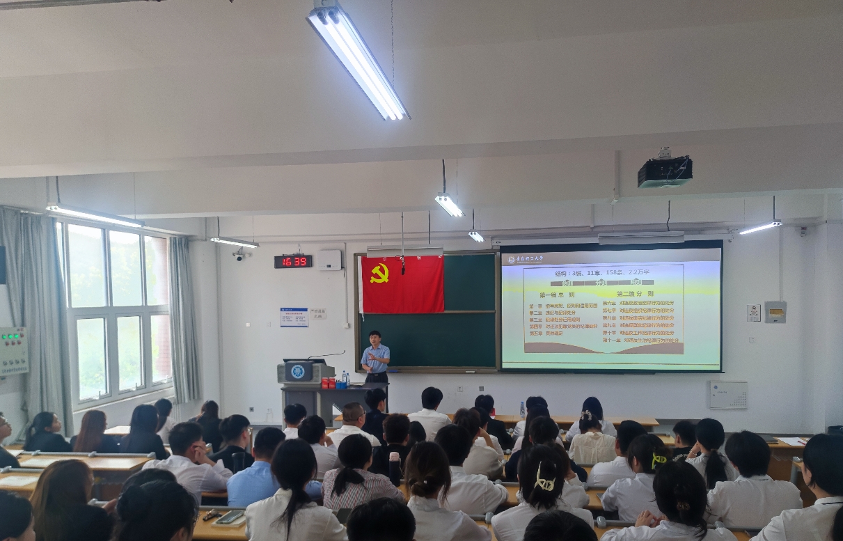 弘扬思想,党纪铭心。为推进党纪学习教育走深走实,公司邀请马克思主义公司任颖卮教授来院,为43名新发展的预备党员讲授专题党课。他以《中国共产党纪律处分条例》内涵为题,从“党的发展历程,党面临的问题,党今后要实现的中心任务”三个层面出发,结合实际案例,生动阐释了《中国共产党纪律处分条例》。在授课过程中,任老师对青年党员寄予厚望:“我们无论在工作、学习还是生活中,都要自觉践行《中国共产党纪律处分条例》,时时自重、自省、自尊、自励,踏踏实实做事、平平淡淡做人,以高标准、严要求为身边师生作出表率。”