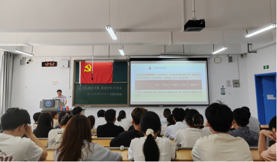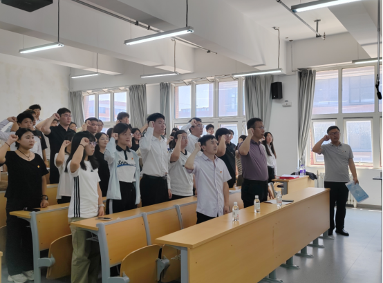 誓言在心,使命在肩。入党宣誓标志着一名党员政治生命的正式开启,见证了一个共产党人为追求人生至高价值而作出的坚定抉择;举起右拳是一名党员向组织作出的庄严承诺,承载了一个共产党人为践行使命担当所立下的铿锵誓言。“我志愿加入中国共产党,拥护党的纲领,遵守党的章程……”王登榜带领37名中共预备党员面向鲜红的党旗,庄严地举起右手,向党旗宣誓。随后,中共预备党员、给排水234班朱雨彤同志代表入党宣誓的新党员,向党组织表决心。最后,隋学智代表上级党组织讲话。他讲道:青年党员要以刻苦学习践行青春的承诺,充分展现新时代共产党员的昂扬向上风貌,为祖国的繁荣昌盛和实现民族复兴的伟大梦想贡献青春力量!