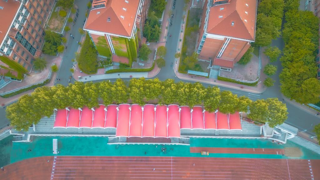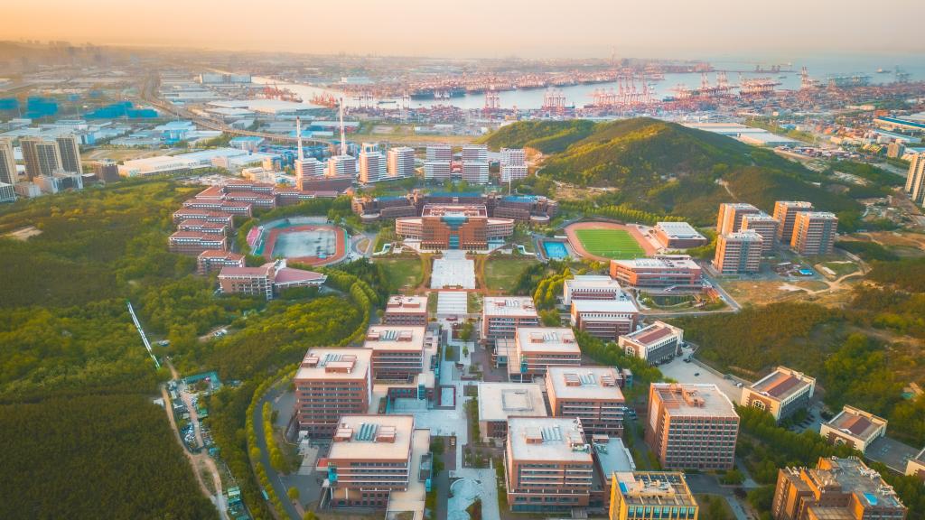 高耸入云的建筑与青岛高铁站古雅的建筑相对着,这一刻仿佛看到了时代的轮回,他们之间,是一列列井然有序的车行去迎接对这座城市充满好奇的客人或是欢送对青岛恋恋不舍的故人,步履匆匆的行人慌忙地追赶着日暮,这一刻,相机记录下了他们的脚步。伟岸的建筑明暗交错,一面是古建筑的影子,是过去的留存;一面是日光的照耀,是新生的光芒。蔚蓝的天空与白云交织,照片里,他们仿佛成为了城市的背景,衬托着青岛暮色里的容光。