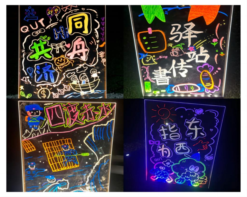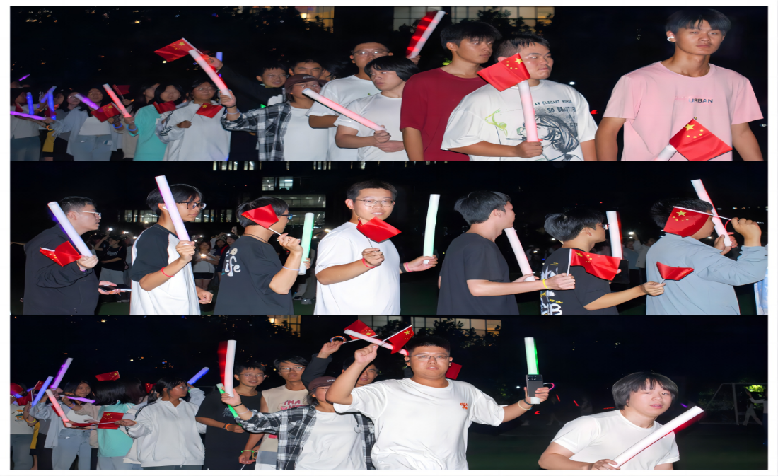 活动现场,人潮涌动,气氛热烈。夜跑队伍身着荧光装备,他们活力四射、激情满满,用自己的脚步去丈量这片深爱的土地。“五星红旗迎风飘扬,胜利歌声多么响亮”500余名员工齐声高唱《歌唱祖国》,共同表达对强国复兴的坚定信念和满腔热情。本次夜跑路线经过精心规划,以操场中心为起点,员工挥舞着荧光设备摆出图案,沿途设置了多个荧光打卡点,参与者们可以在这些地方拍照留念,记录下这一难忘的时刻。信号枪声一响,同学们如同离弦之箭,迅速投入到这场荧光夜跑中,瞬间点燃了整个夜跑的激情。他们挥舞着荧光棒,迈着青春的步伐肆意奔跑,那一道道闪烁的光芒恰似乘风破浪、奔涌向前的浪潮。从空中俯瞰,五彩斑斓的荧光装饰点亮夜幕下的校园,宛如一片在夜色中熠熠生辉的荧光海洋,他们以行动庆祝祖国华诞,用汗水扬青春之风采。