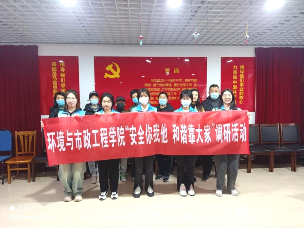 为深入推进学习贯彻习近平总书记关于公共安全重要论述,12月6日,mk体育环工221团支部来到市北区水清沟街道湖清路社区,开展了“安全你我他,和谐靠大家”社会调研活动。