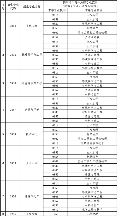 3.调剂报考专业应满足下表所示的考生第一志愿范围要求