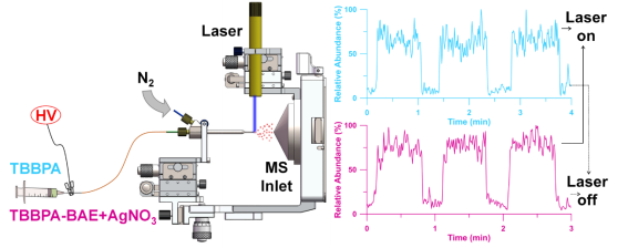 1 激光辅助电喷雾电离装置示意图及其分析TBBPAm/z 543TBBPA-BAEm/z 731)的选择离子流