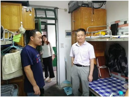为深入了解同学们返校情况、思想动态及排查各类安全隐患,保障新学期各项教学管理工作的顺利开展,8月26日公司党总支副书记邵长飞,学工办主任兼分团委书记张恬及公司全体员工工作干部深入员工公寓开展走访检查工作。