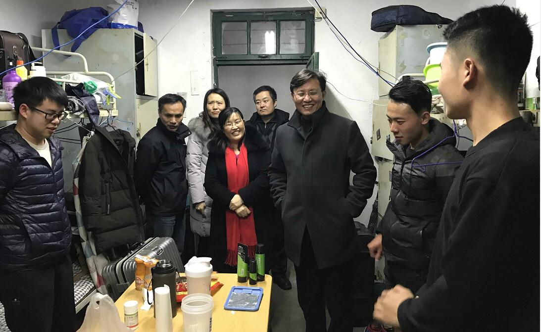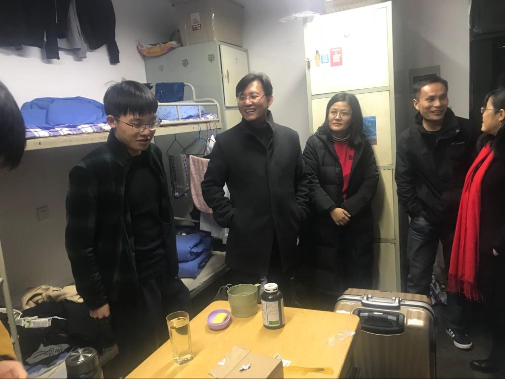 走访过程中,老师们和员工亲切交谈,了解员工假期生活及新学期学习、生活方面的需求。同时,鼓励同学们新学期、新征程,为了更广阔的目标努力学习,锻炼身体,全方位提高自己。最后,提醒同学们要注意宿舍通风、被褥晾晒、保持良好的生活习惯,重视春季传染病预防等工作。邵长飞副书记就宿舍卫生、晨检、垃圾出公寓等工作做了具体指导