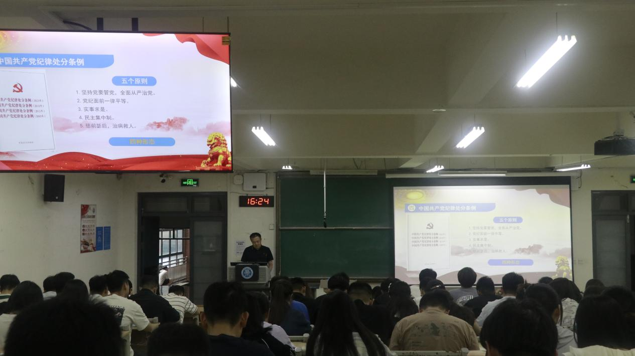 躬身细品“初心钙”,锤炼廉洁“清风骨”。为引导毕业生党员“扣紧”“扣实”“扣正”离校后的“第一粒扣子”,mk体育特邀校纪检监察室主任邵长飞来院,为143名毕业生党员讲授廉洁专题党课。邵书记以《纪律规矩意识涵养与践行》为题,从进行廉洁教育的目的意义入手,带领全体毕业生党员重点学习了《中国共产党纪律处分条例》中的五个原则和四种形态,对修订、新增的内容进行了介绍和分析。并提醒毕业生党员守正初心信仰,在为人处事中知边界,明底线,坚决做到守牢道德底线,不碰法律高压线。毕业生党员纷纷表示,作为即将步入工作岗位的共产党员,要时刻自重自省,警钟长鸣,成长为忠诚可靠的、堪当民族复兴重任的青年生力军!