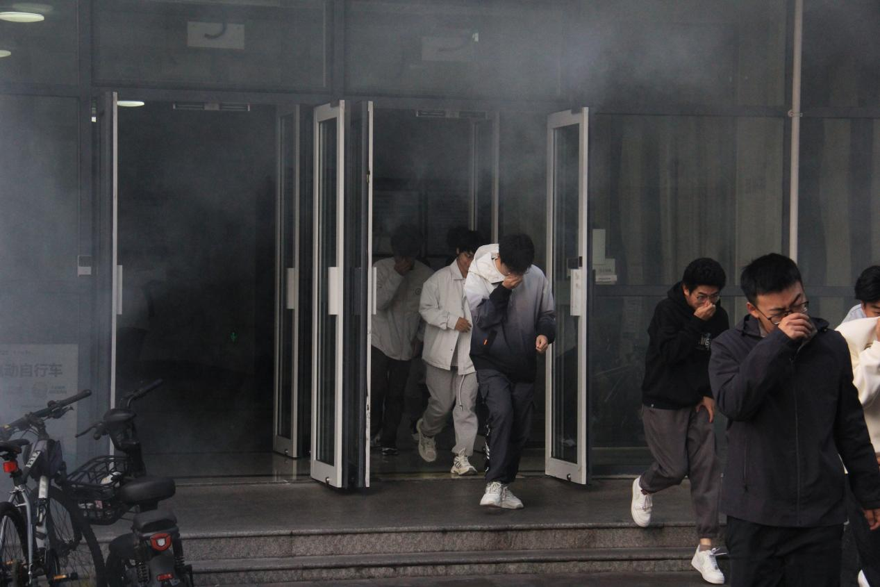 实验楼培训提能力 公司于C2-4实验楼组织了实验楼消防安全应急疏散演练及灭火器使用培训。参与演练人员包括公司师生共三十余人。大家按照疏散路线,穿过浓雾,迅速、有序地撤离至实验楼北侧空地。之后,公司安全管理处的老师详细讲解了干粉、泡沫、二氧化碳三类灭火器的使用方法及注意事项,针对灭火距离、喷射部位等要点进行现场科普教学。现场的同学们进行了二氧化碳灭火器的实操演练,亲身体验了使用流程。