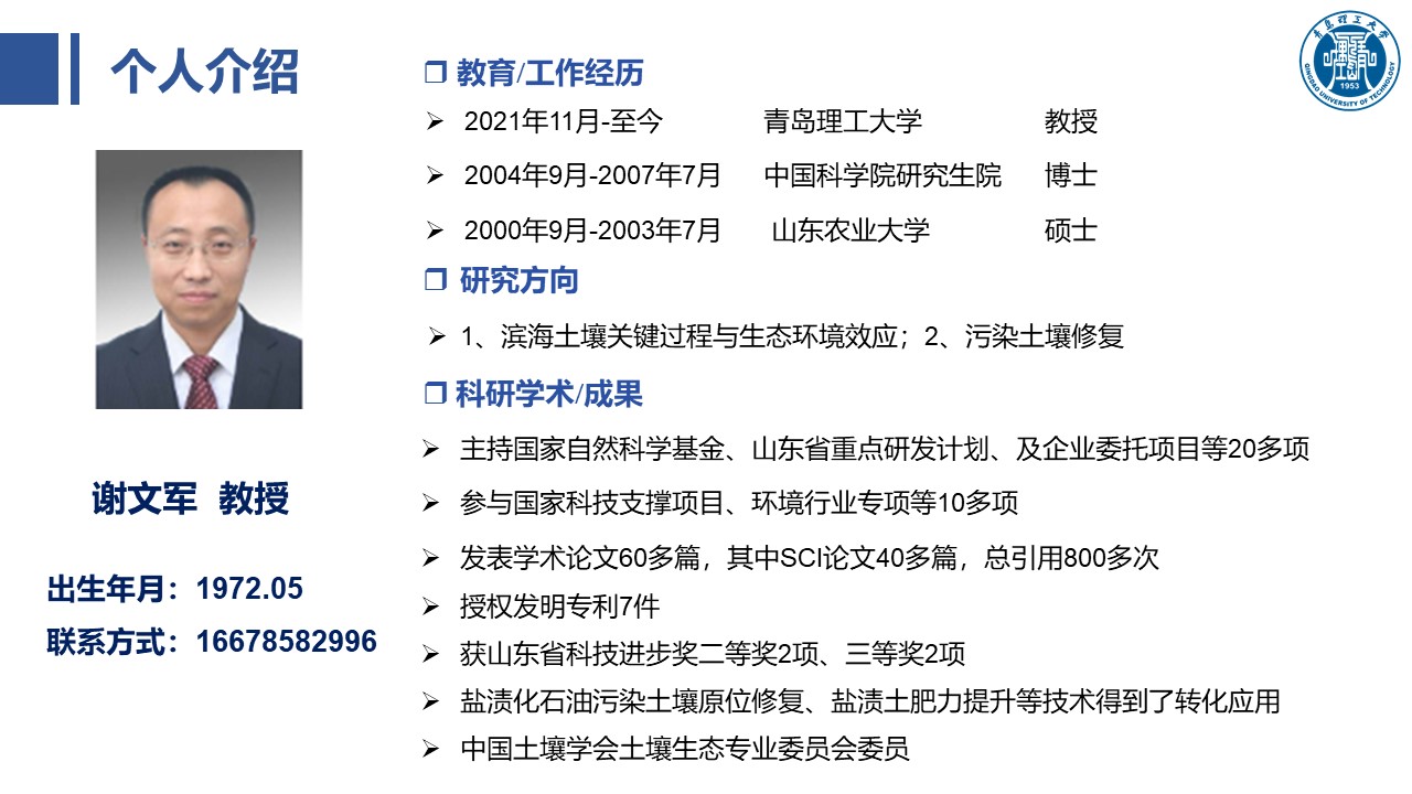 滨海土壤污染修复及新兴污染物的环境行为团队:
